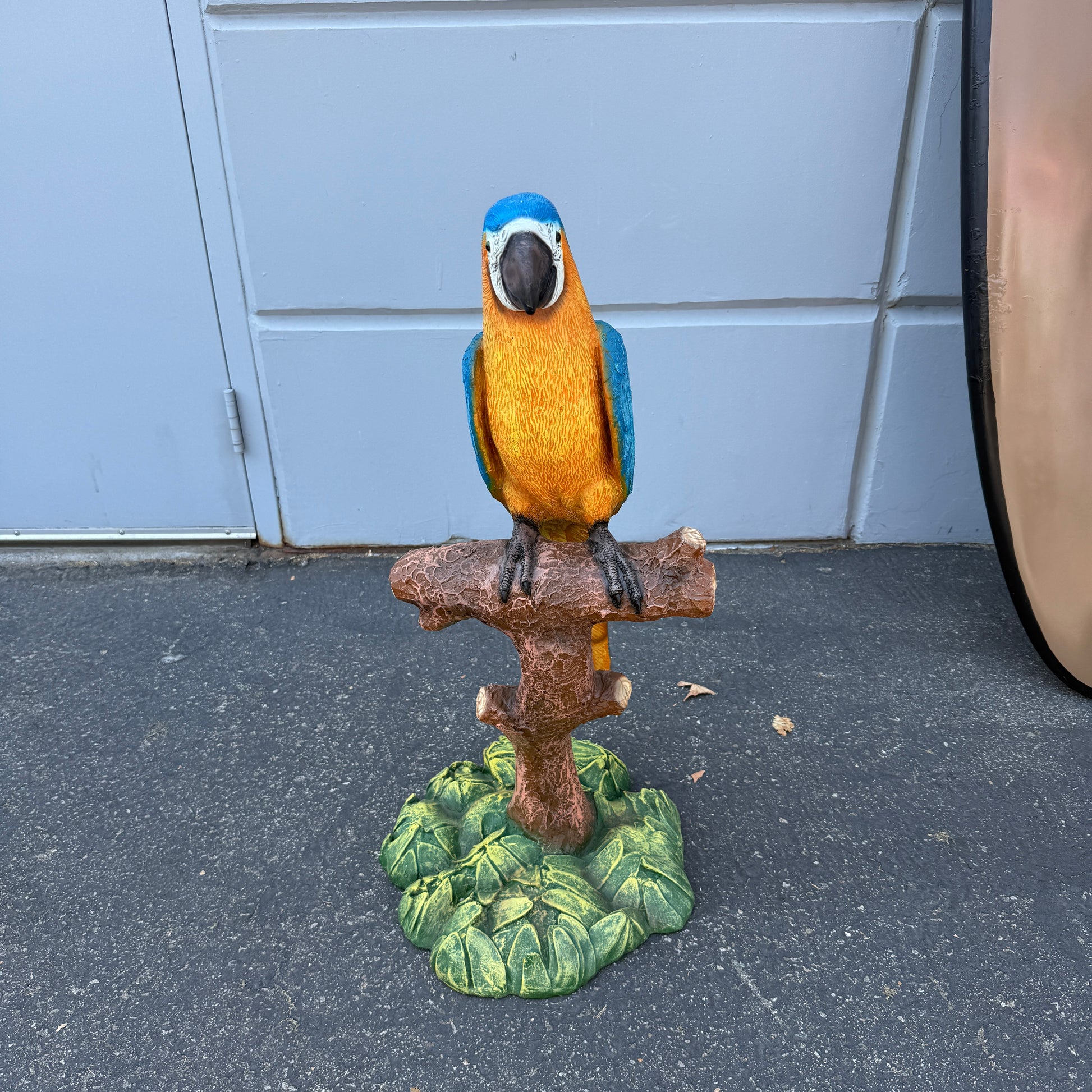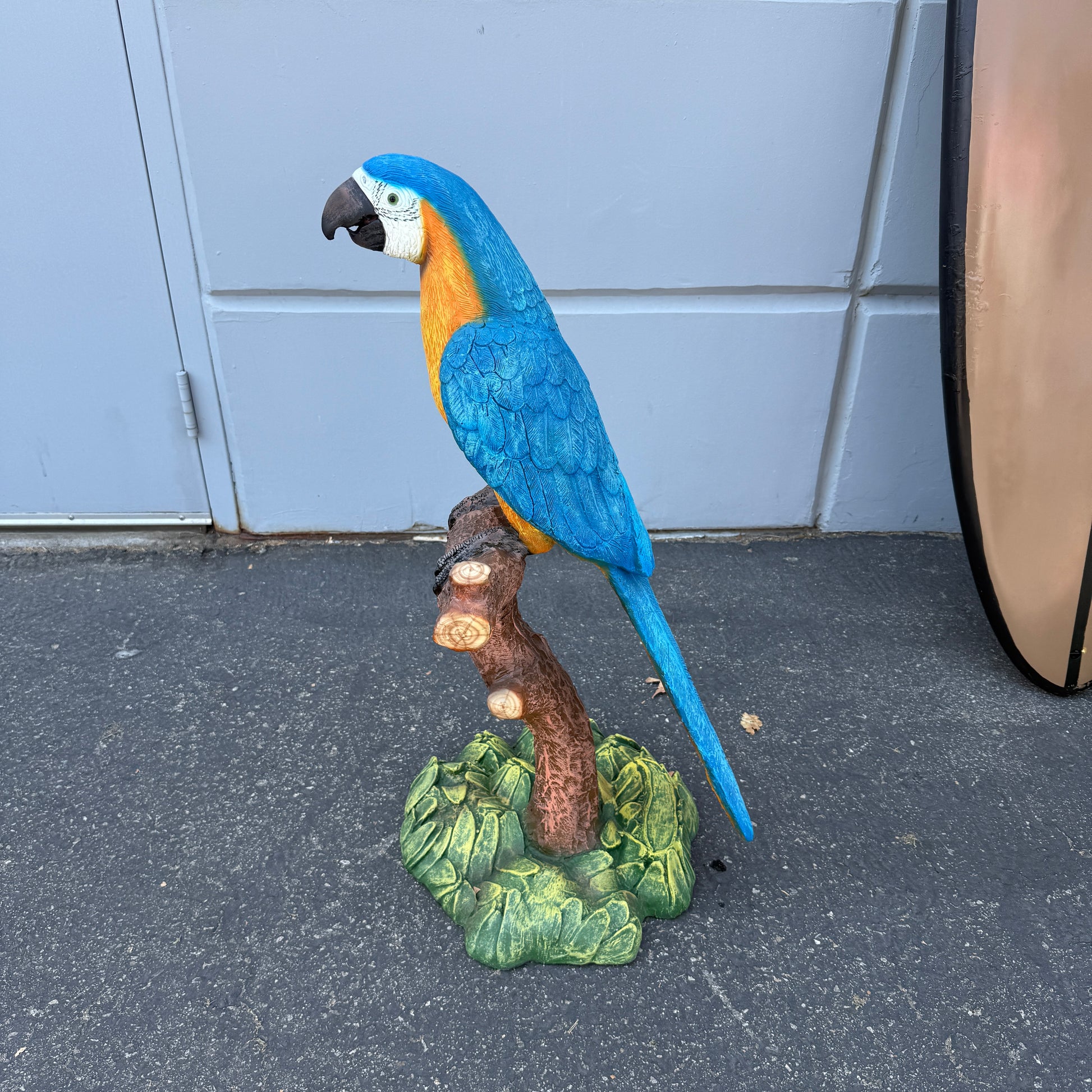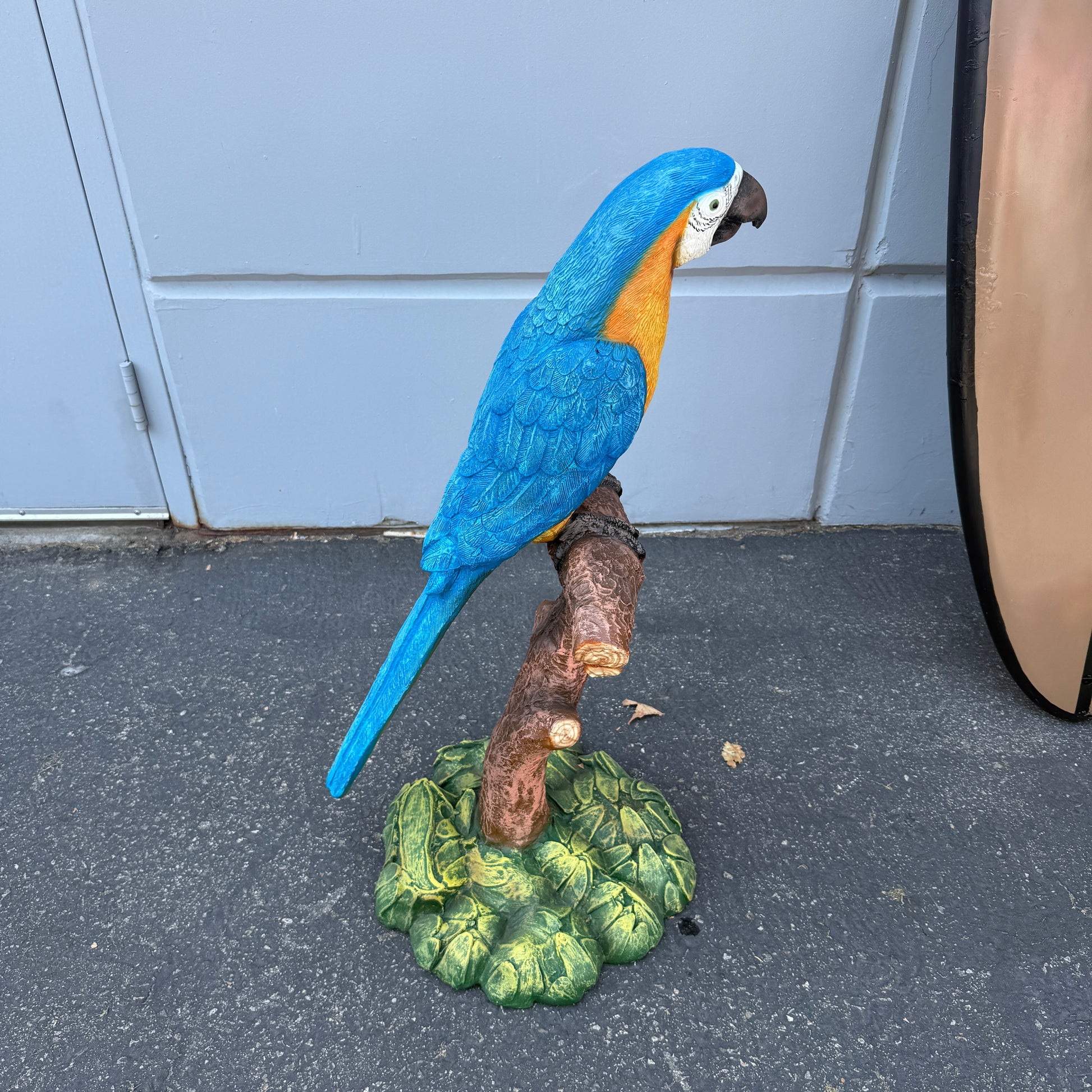 Blue Macaw Parrot On Branch Statue