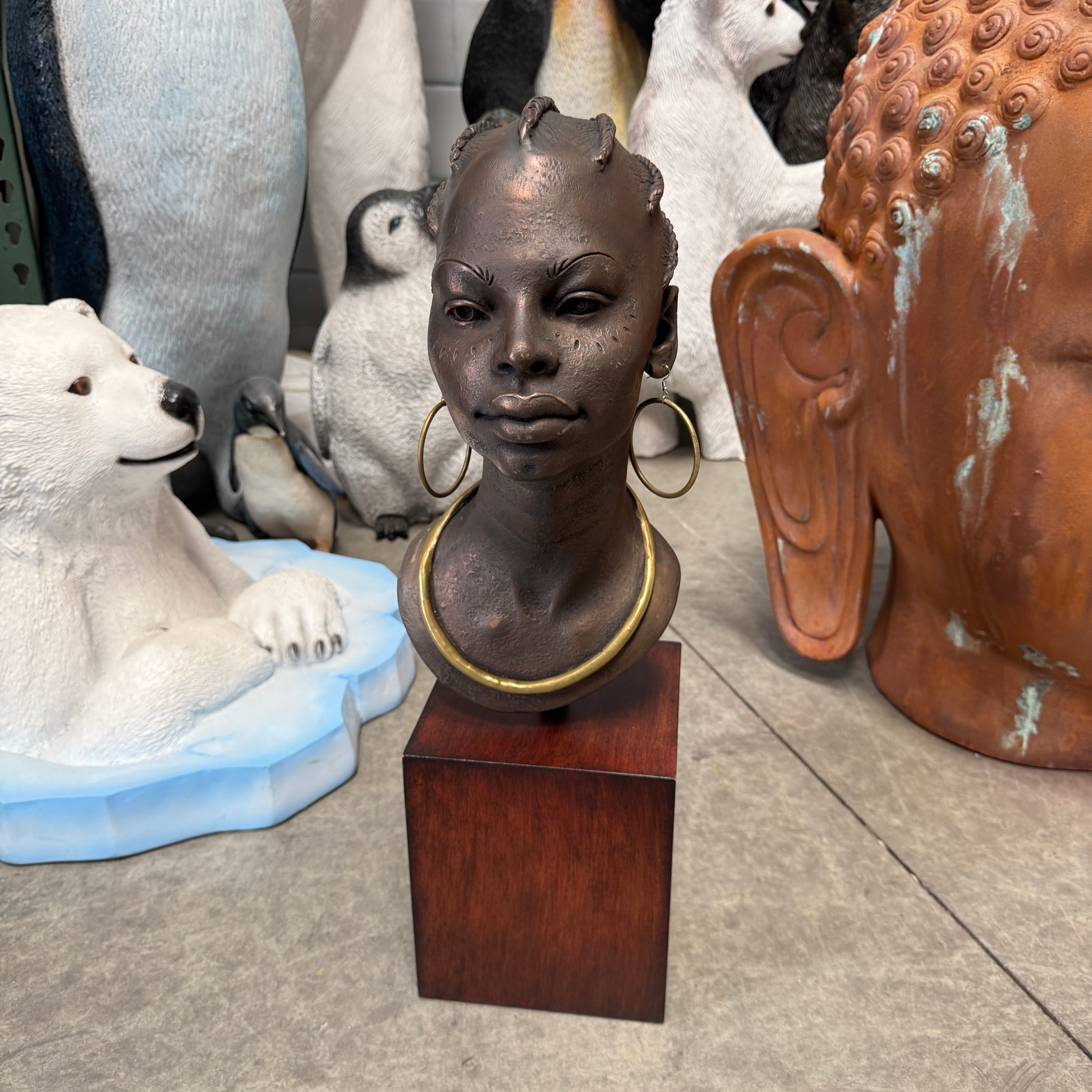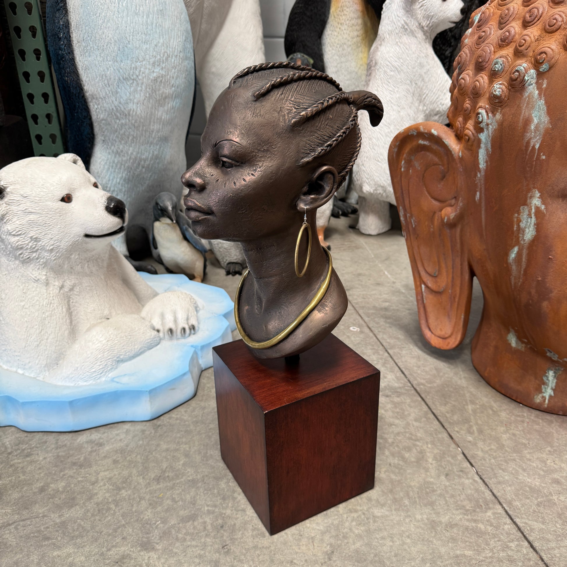 Bronze African Female Head Statue