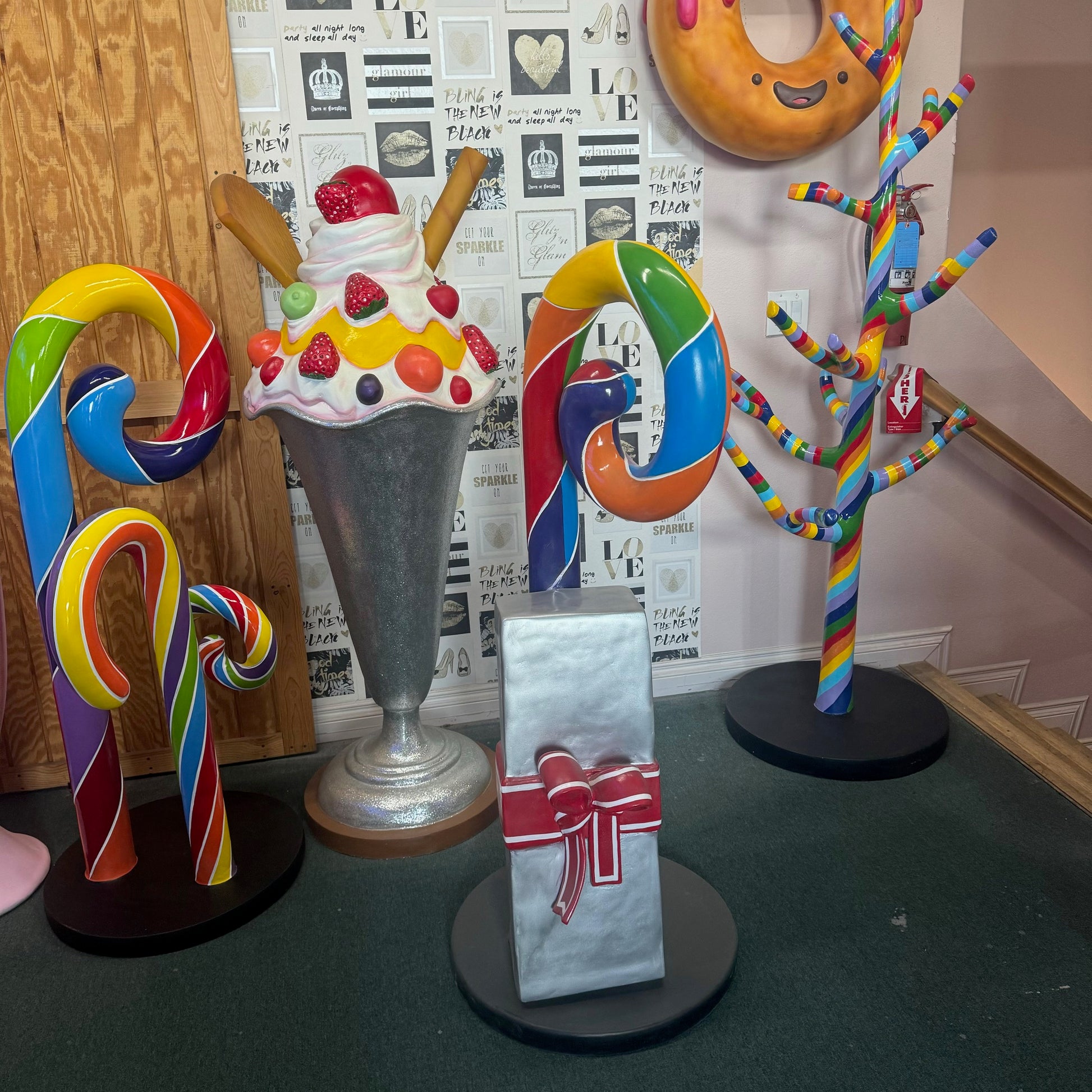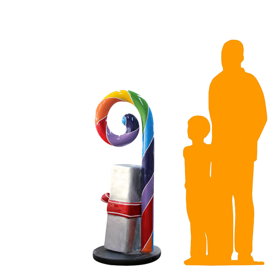 Swirl Rainbow Candy Cane With Gift Statue