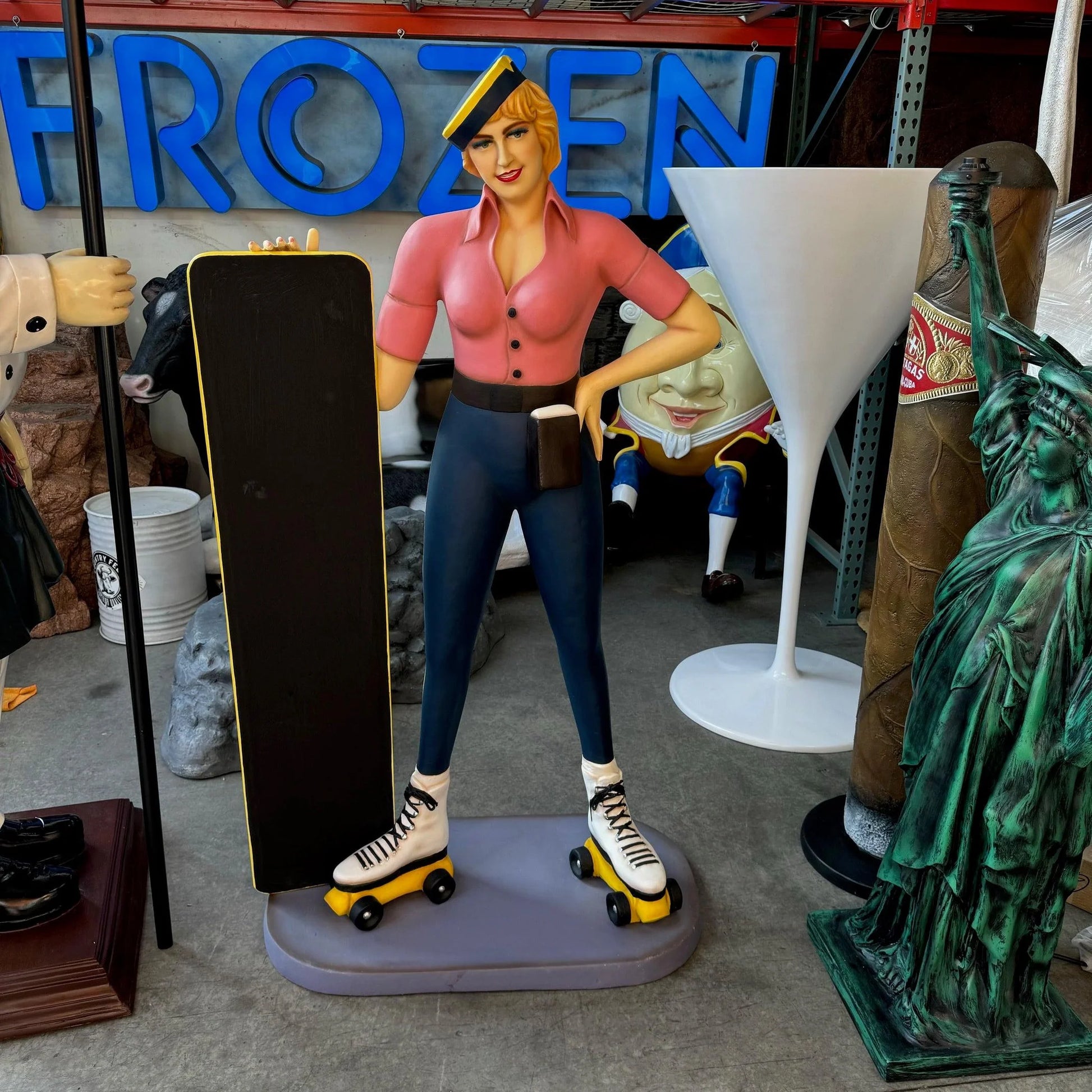 Car Hop Roller Skater Waitress With Menu Life Size Statue