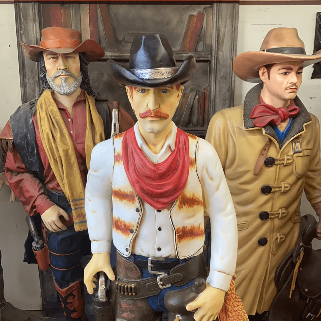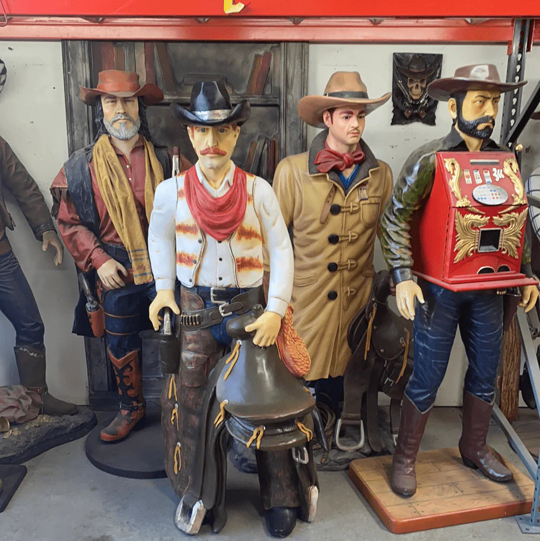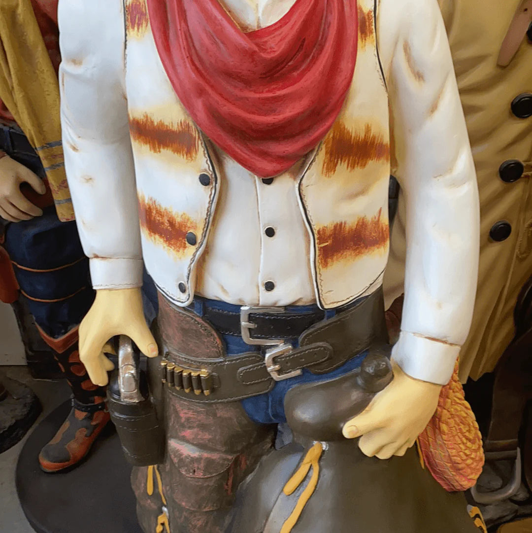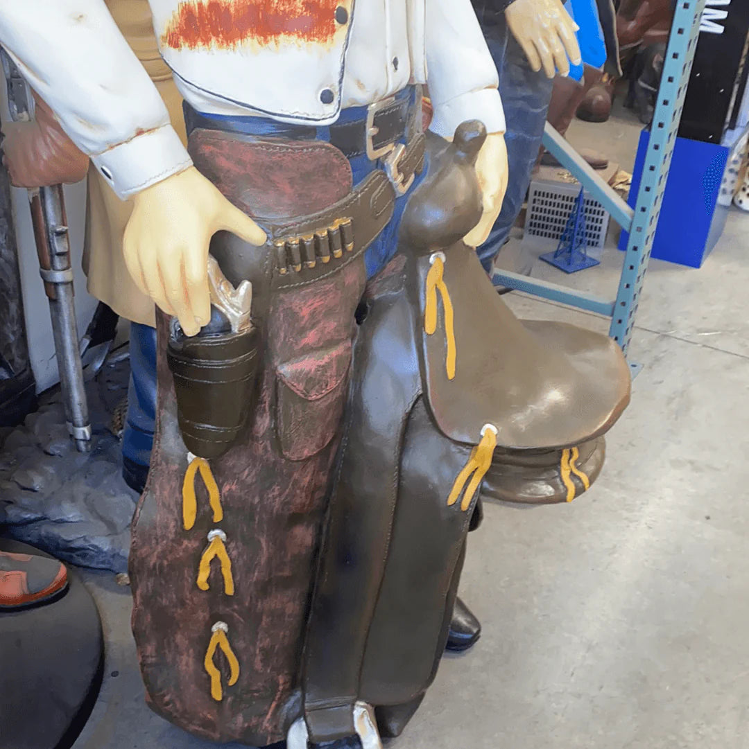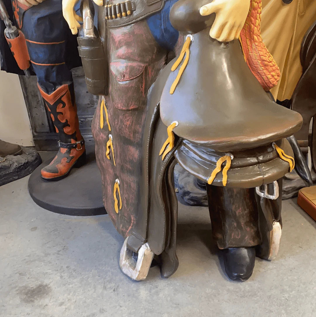 Western Cowboy With Saddle Statue