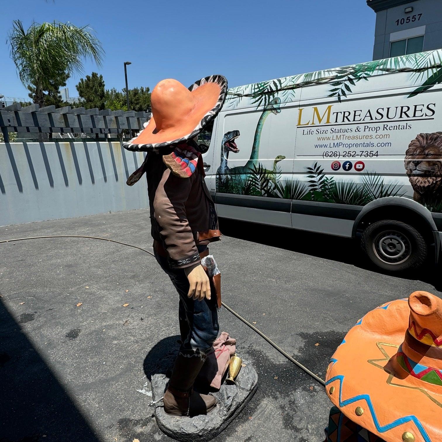 Cowboy With Sombrero Life Size Statue