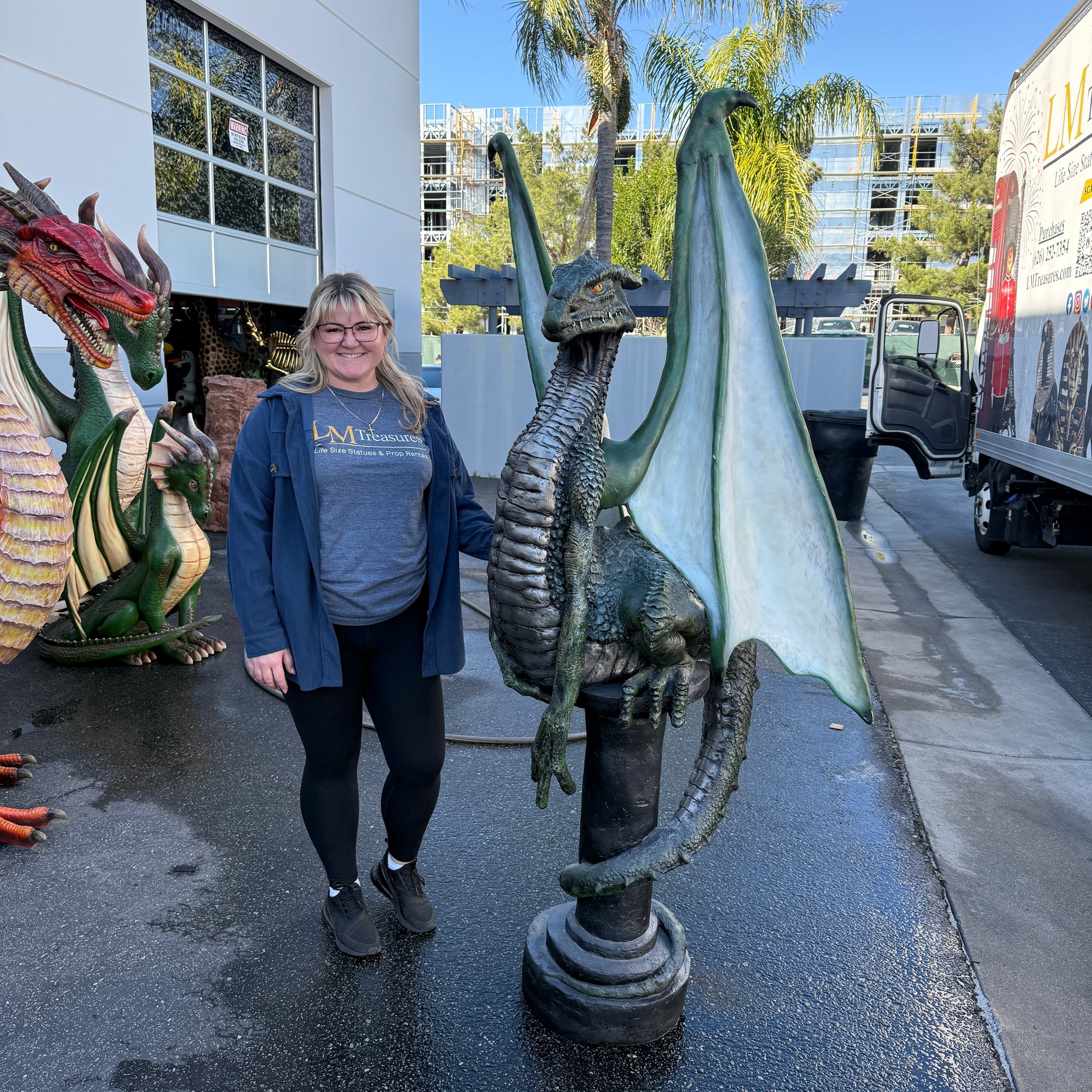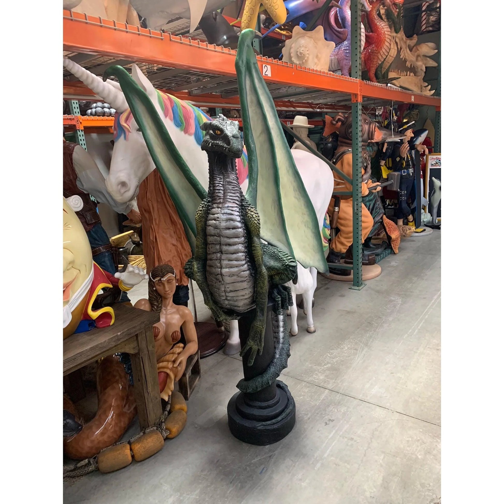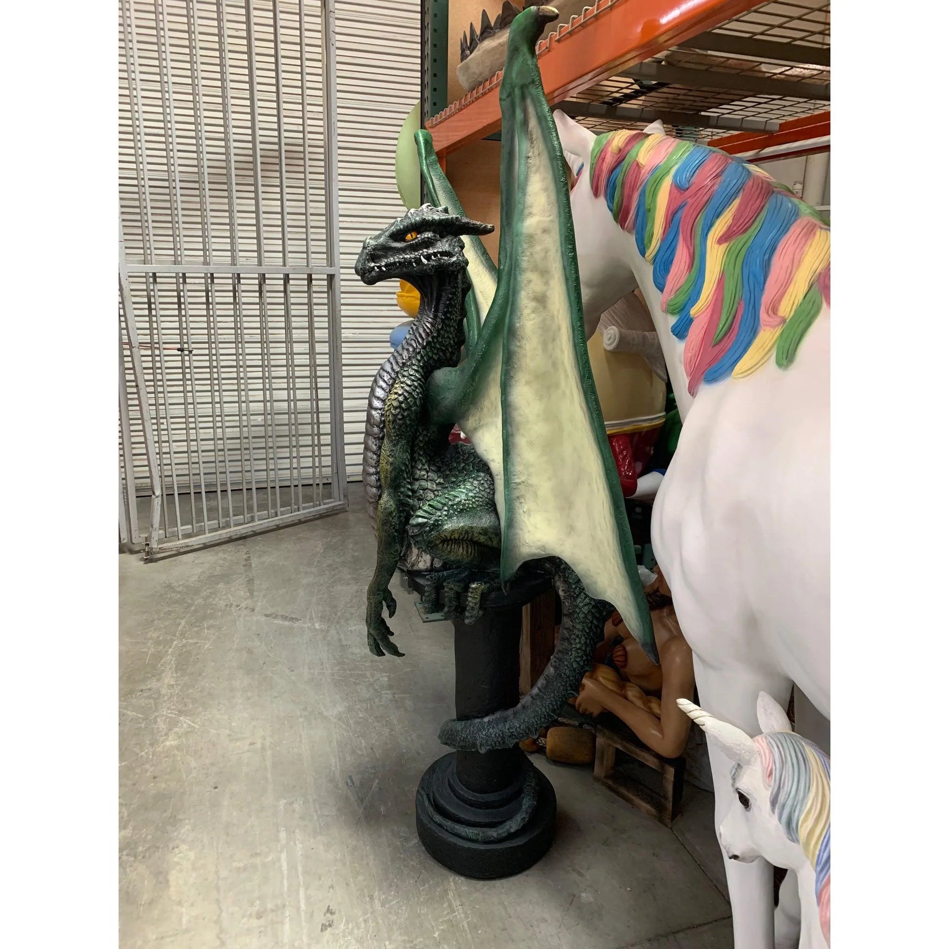 Green Dragon On Post Life Size Statue