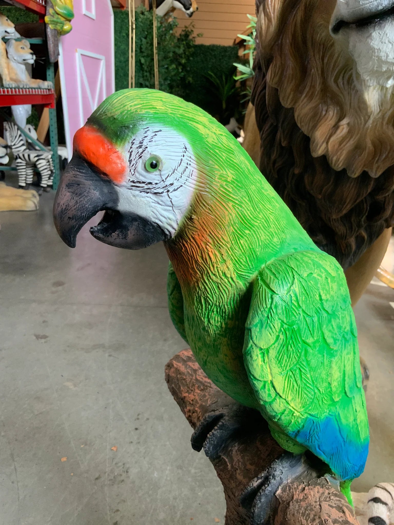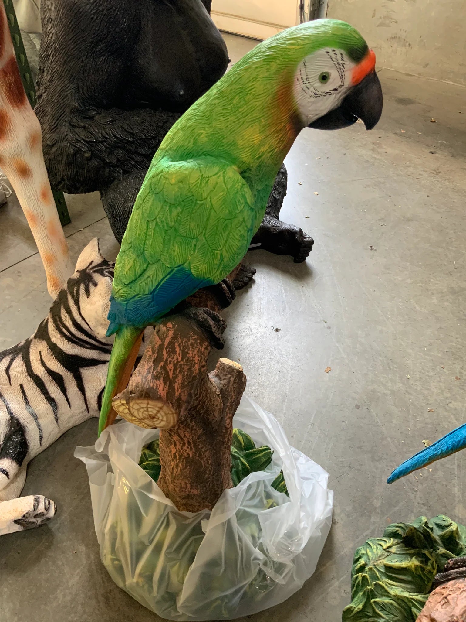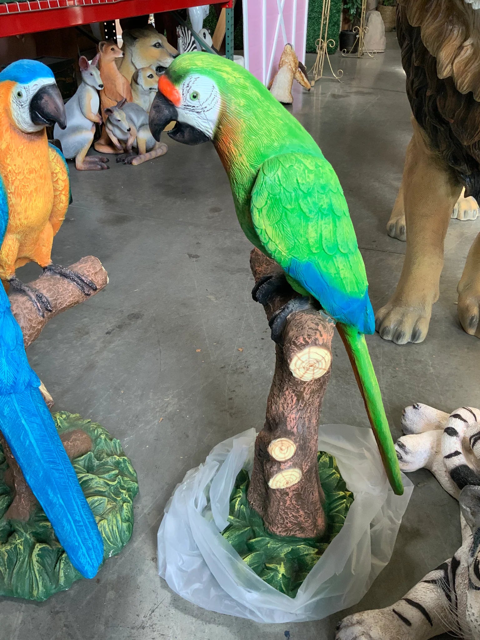 Green Macaw Parrot On Branch Statue