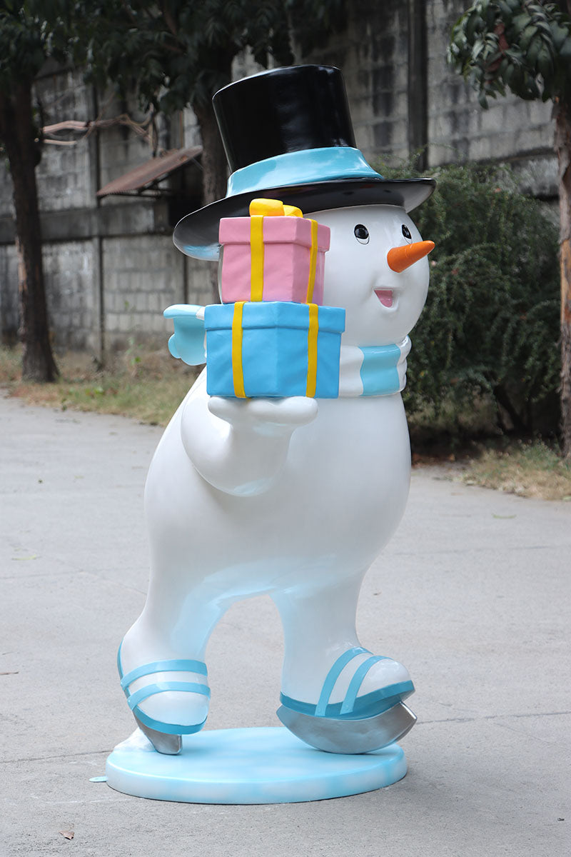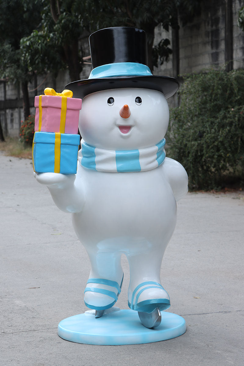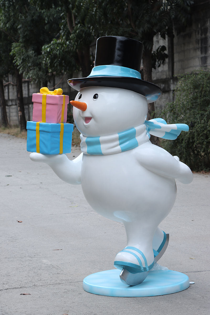Ice Skating Snowman Father Statue