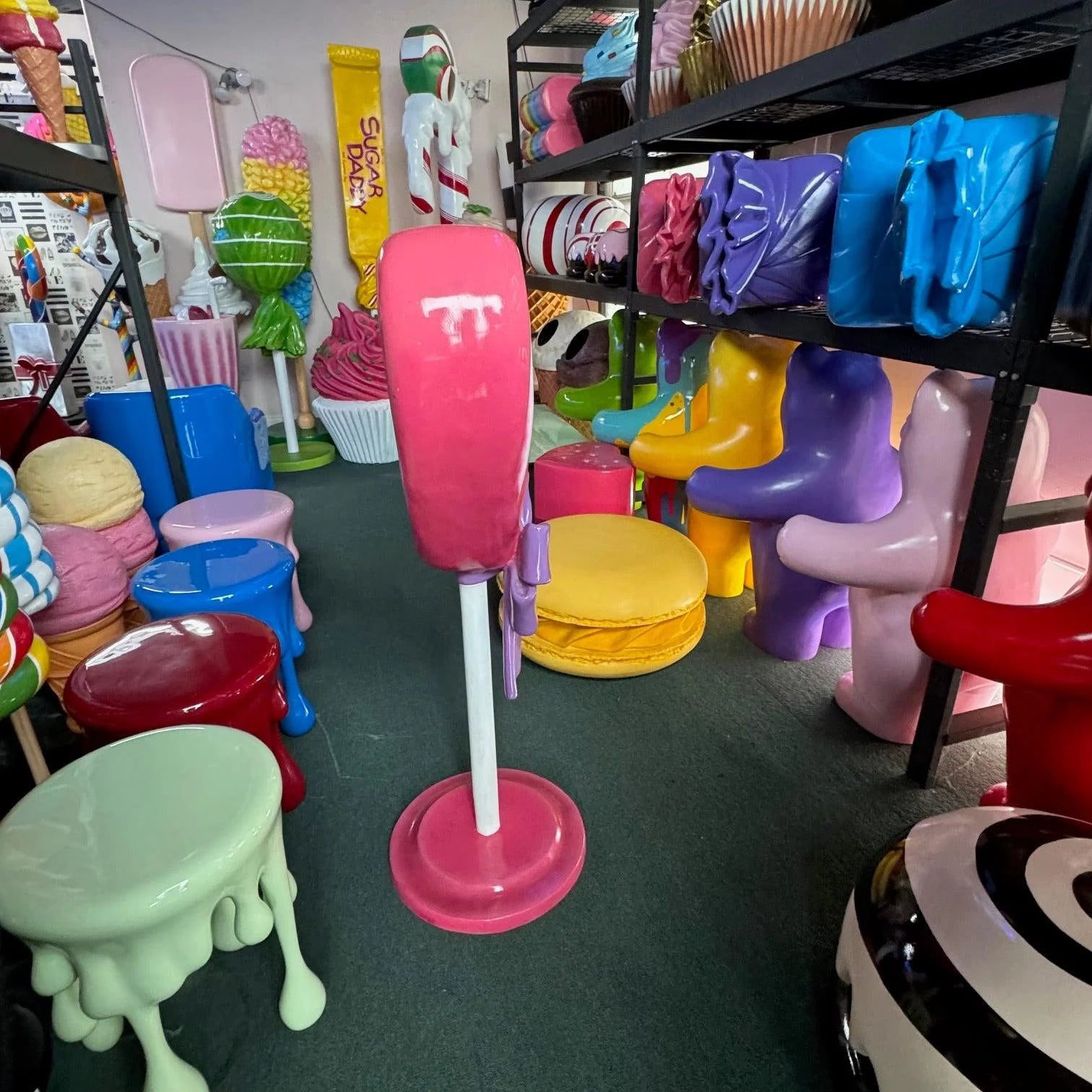 Pink Heart Lollipop Statue With Bow