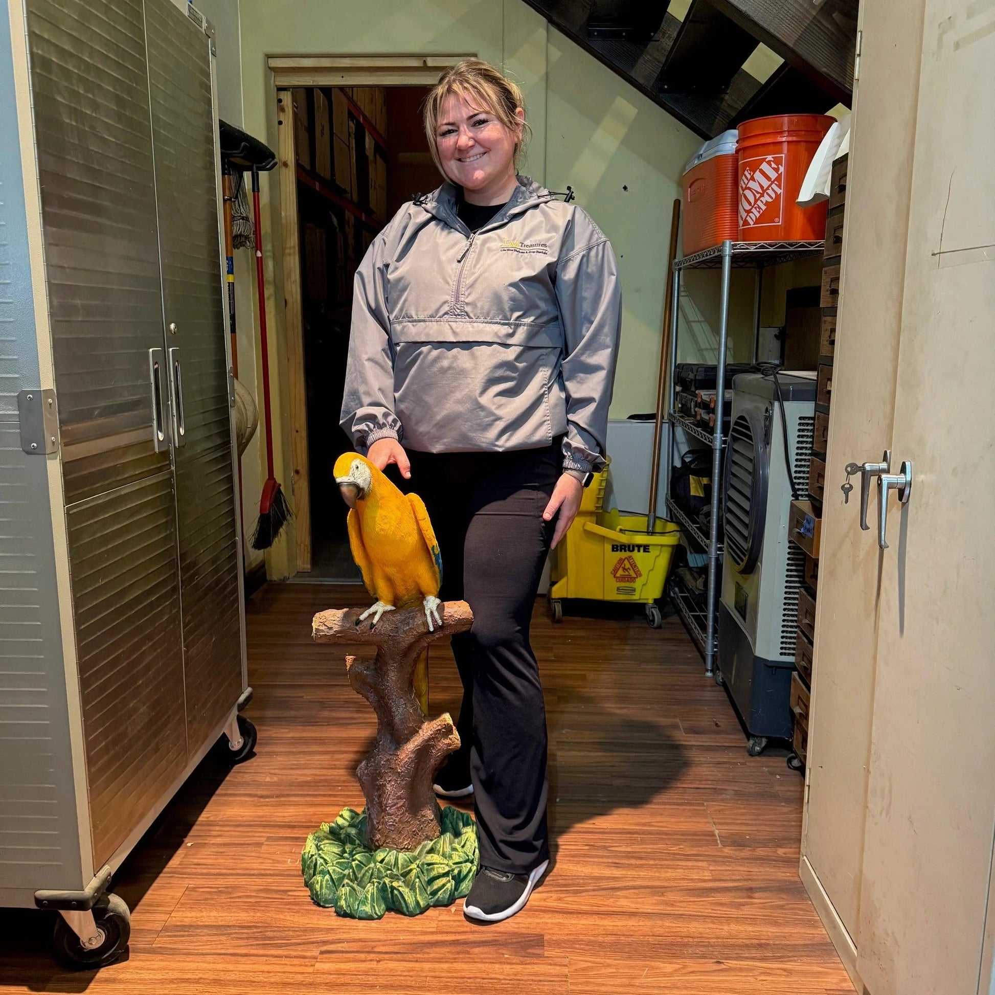 Yellow Macaw Parrot On Branch Statue